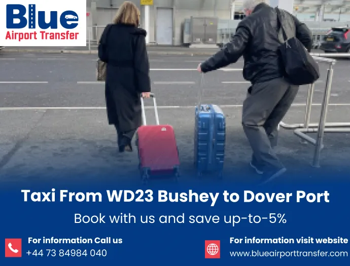 Blue Airport Transfer makes it simple to get from WD23 Bushey to Dover Port Our skilled drivers will guarantee a pleasant and secure journey in our dependable and spotless vehicles.
